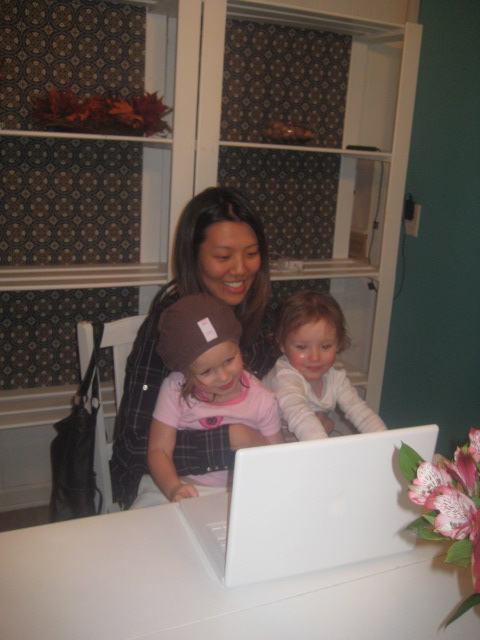 Even though she had no idea what the computers were for, she and Lorelei were MORE than excited to sit and 'help' push buttons. Addison named her new little friend Paci-Bunny. How very creative, right? haha